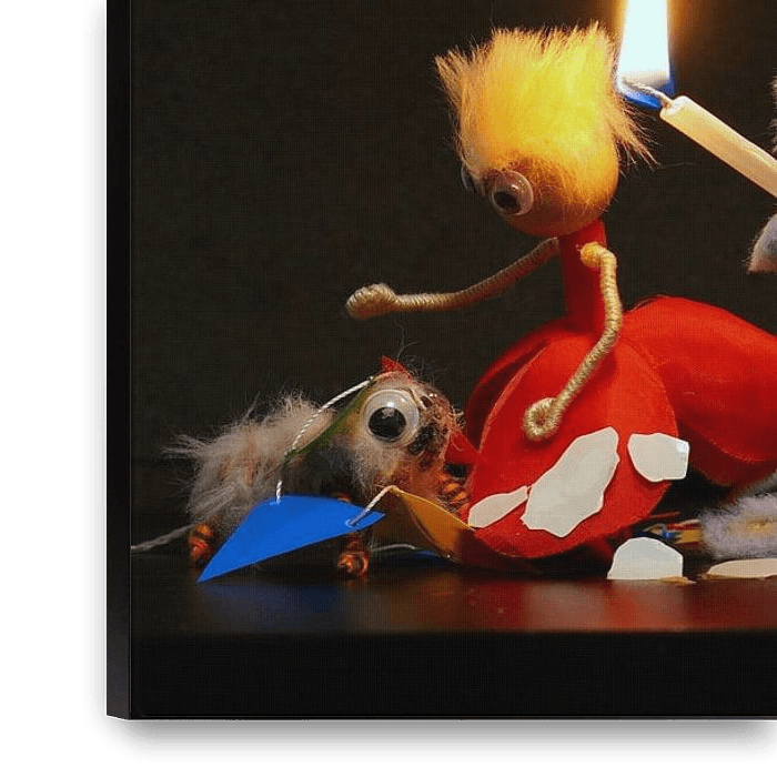 Bestelle dieses abstrakte Wandbild Fubby geht feierlich mit Kerzen, eine lustige Szene. von Sailographic Paula als Reproduktion auf Leinwand, Alu-Dibond, als Poster, Fototapete oder Acrylglasbild.