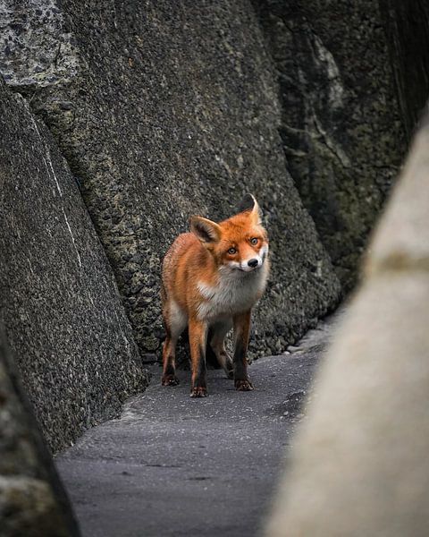 Bei einem Spaziergang auf dem Zuidpier in IJmuiden begegnete ich diesem schönen Fuchs. Wir schauten uns kurz an und dann war das Tier ganz schnell wieder verschwunden.