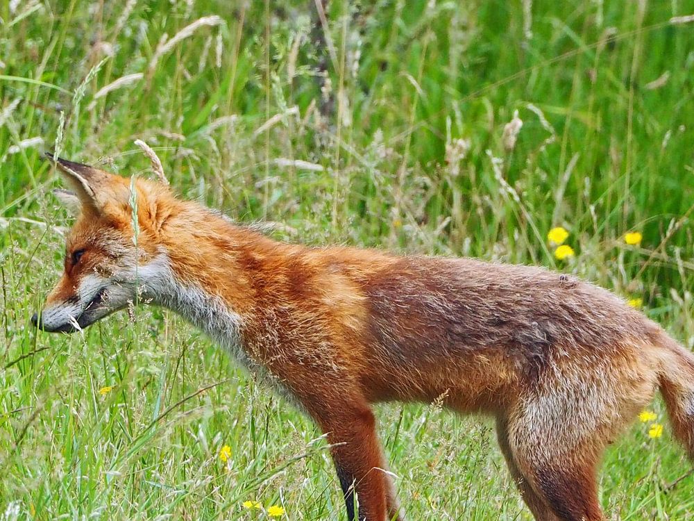 Dieser Fuchs ist auf der Suche nach Futter. Er hüpft am Graben entlang auf der Suche nach einer leckeren Mahlzeit. Geduldig wartet er auf den richtigen Moment, um sich auf seine Beute zu stürzen