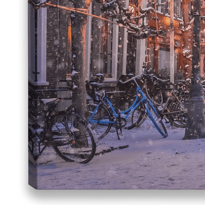 Eine romantische, fast Dicken-ähnliche Winteratmosphäre in Leiden. Aufgenommen im Winter 2019 an der Ecke Hof und Muskadelsteeg.