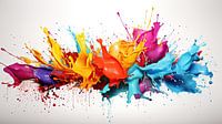 Eine künstlerische Explosion von Farbspritzern, die einem Symphonieorchester aus Farbe ähnelt und Helligkeit mit Bewegung verbindet.