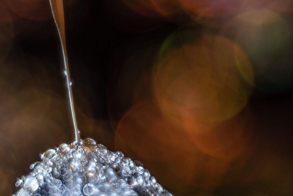 Flaum mit Wassertröpfchen auf Hintergrund mit warmen Tönen
