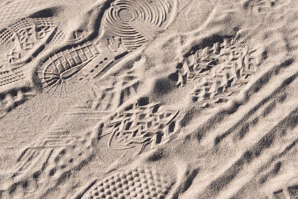 Jeder kennt die Strandfotos mit dem Wasser, der Sonne, den Silhouetten im Gegenlicht, aber das, was direkt vor uns liegt, die Muster und Texturen, die jeder sofort erkennt. Ein schöner sonniger Tag am Strand aus einer anderen Perspektive.