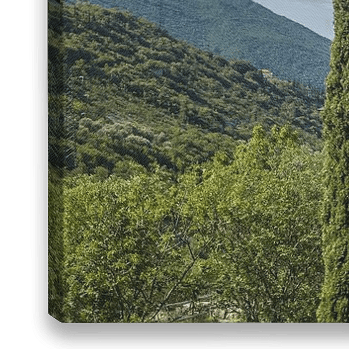 Bestelle dieses Landschafts-Wandbild GARDASEE Wundervoller Panoramablick von Melanie Viola als Reproduktion auf Leinwand, Alu-Dibond, als Poster, Fototapete oder Acrylglasbild.