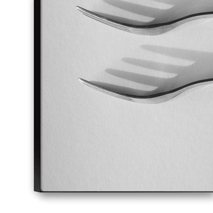 Ein Stillleben von Gabeln mit Schatten und Sonnenlicht
