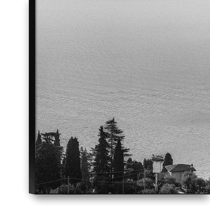 Bestelle dieses Landschafts-Wandbild Gardasee bei Malcesine als XXL Panorama in schwarzweiss von Manfred Voss, Schwarz-weiss Fotografie als Reproduktion auf Leinwand, Alu-Dibond, als Poster, Fototapete oder Acrylglasbild.
