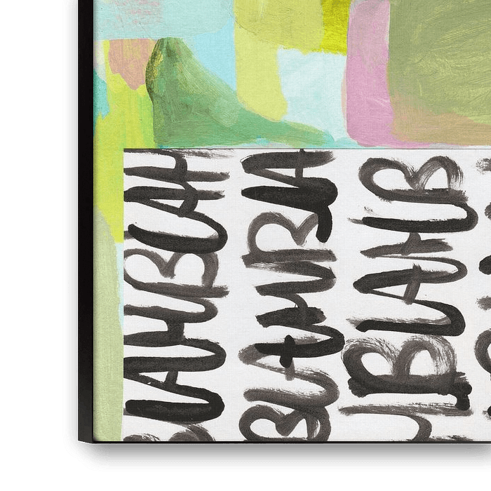 Garden Rejoice' ist ein Gemälde mit Grün-, Gelb-, Rosa- und Blautönen, die zusammen einen verträumten Garten bilden. Es wirkt fröhlich und friedlich, als ob man sich in einem magischen Garten befindet. Ideal, um Ihrem Raum einen frischen und lebendigen Look zu verleihen.