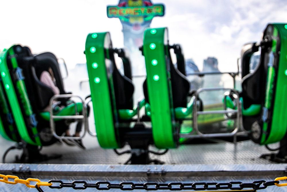 Eine Jahrmarktsattraktion mit cooler Optik. Vollkommen im Stil eines Kernreaktors mit Gefahrenzeichen.
