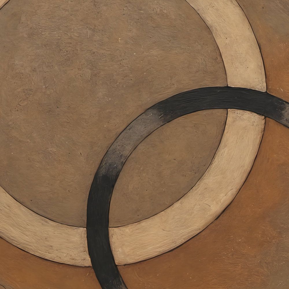 Die Textur der Farbe und das harmonische Spiel von hellen und dunklen Farben schaffen eine visuell ausgewogene Komposition. Die einfache und doch kraftvolle Anordnung lädt den Betrachter ein, über die symbolische Bedeutung der Kreise und ihre Beziehung zueinander nachzudenken. Die Verwendung von Erdtönen verstärkt das organische Gefühl des Werks und schafft eine beruhigende, natürliche Atmosphäre.