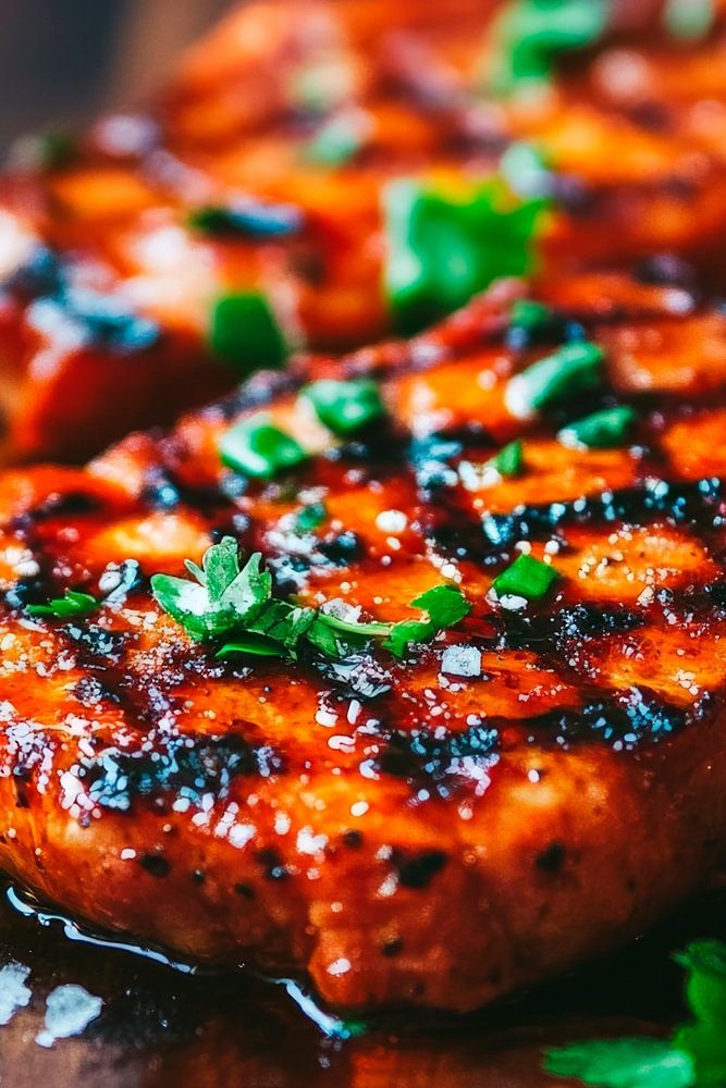 Mit köstlichen Grillspuren und frischen Kräutern präsentiert sich ein verlockendes Arrangement saftiger Speisen. Der satte Glanz der Marinade verleiht den Dishes einen appetitlichen Charme. Perfekt für die Küche, inspiriert es zu kulinarischen Abenteuern und lädt zum Verweilen ein, während die Aromen die Sinne verzaubern.