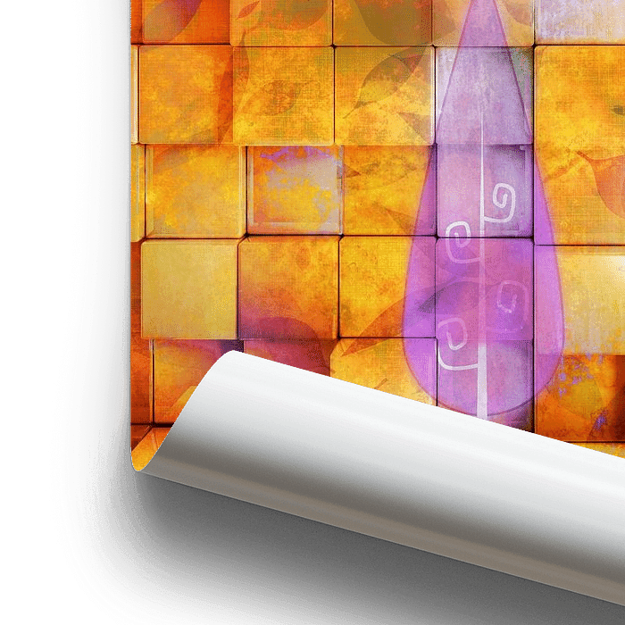 Abstrakte Kunst in den blauen, orange, gelben und purpurroten lila Farben, Farbblöcke der Spiritualität ♥