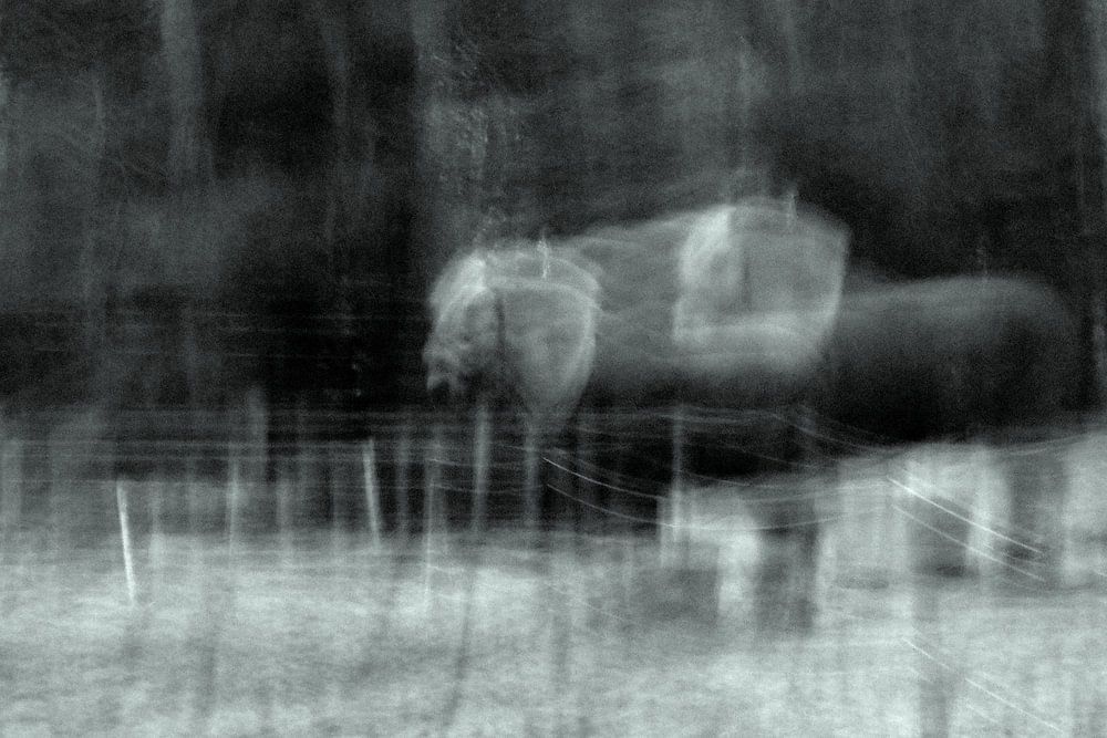 Das Alltägliche auf ungewöhnliche Weise. Ein oder zwei Pferde auf einer Wiese. Das Bild scheint in Zeitlupe aufgenommen zu sein und vermittelt eine ebenso abstrakte wie malerische Atmosphäre. Wie in visueller Poesie.
