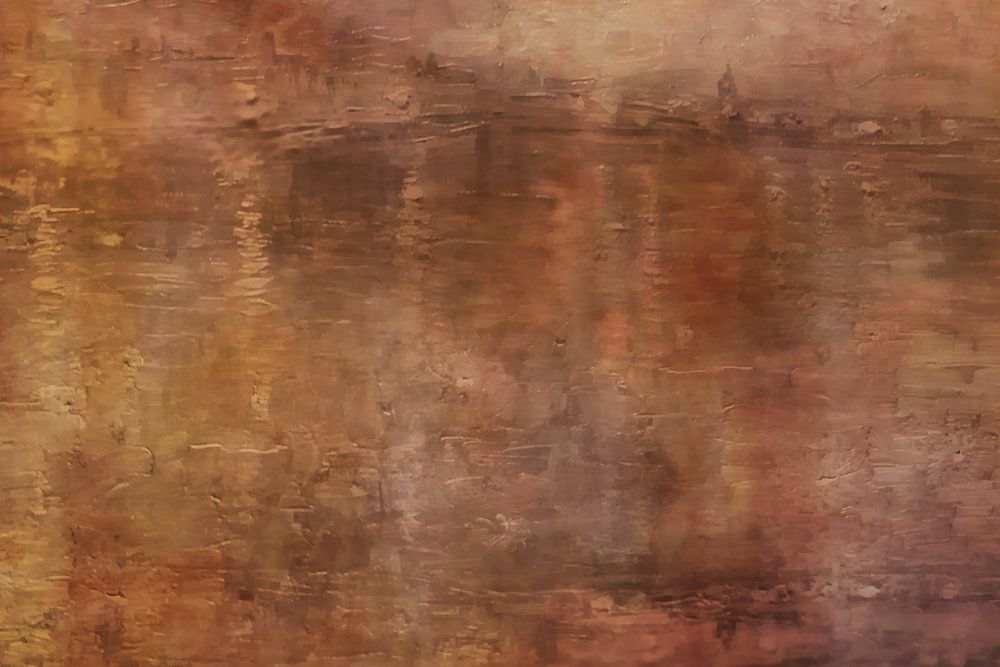 Abstraktes Werk, in dem ein kaum sichtbares Gesicht verborgen ist.