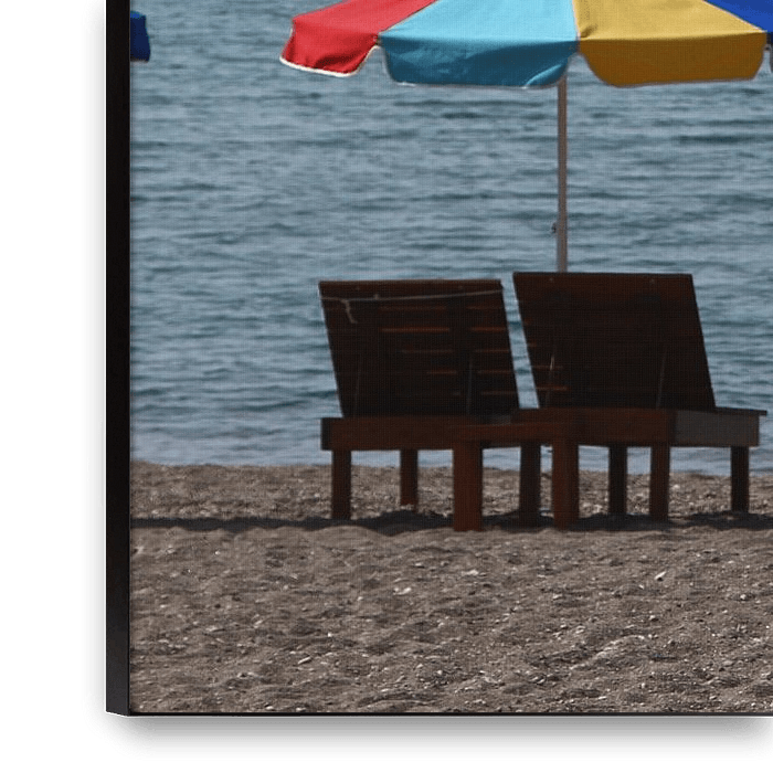 Bestelle das Foto Gekleurde parasolletjes op het strand von Edwin Pijpe als Reproduktion auf Leinwand, Alu-Dibond, als Poster, Fototapete oder Acrylglasbild.