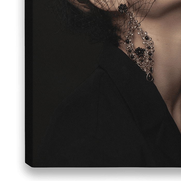 Ein klassisches Porträt mit einem Twist von einer Person, die eine Krone und ausgeprägtes Make-up trägt. Die Person schaut den Betrachter auf eine geheimnisvolle und faszinierende Weise an.
