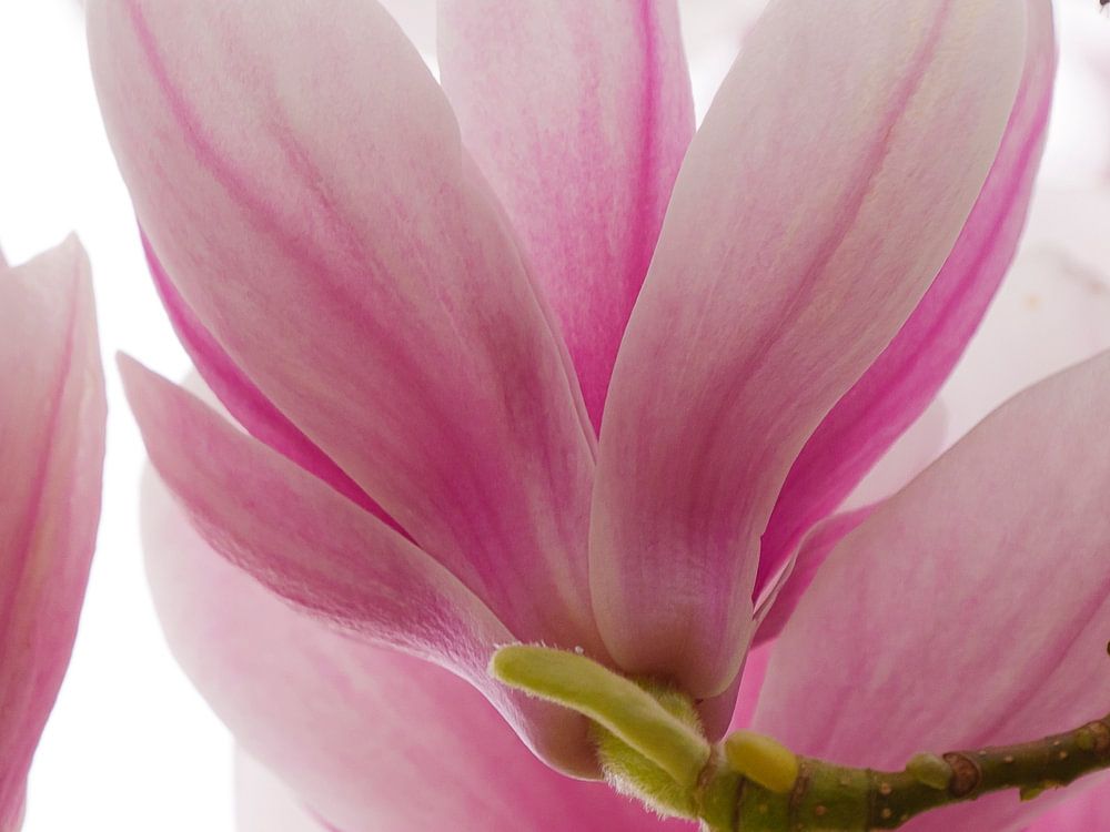 Frühlingsstimmung mit dieser ruhigen Aufnahme der blühenden Magnolie. Die zarten Rosatöne und der leichte, luftige „ ' high-key' “-Stil strahlen Reinheit aus. Sie ist eine meiner Lieblingsblumen.