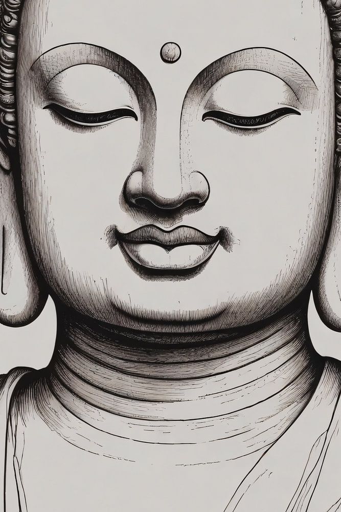 Diese anspruchsvolle Illustration zeigt einen friedlichen Buddha, der in einem minimalistischen, aber ausdrucksstarken Stil gezeichnet ist. Die weichen Linien und der subtile Einsatz von Schatten vermitteln ein tiefes Gefühl von Ruhe und Gelassenheit. Das Design ist auf eine monochrome Farbpalette beschränkt und strahlt eine zeitlose Schönheit aus, die in jeden Raum passt. Es ist ein perfektes Stück, um eine ruhige und kontemplative Atmosphäre in Ihrem Zuhause oder Büro zu schaffen. Egal, ob Sie ein Liebhaber klassischer Kunst sind oder moderne Schlichtheit bevorzugen, dieses Bild lädt zu Kontemplation und innerem Frieden ein.