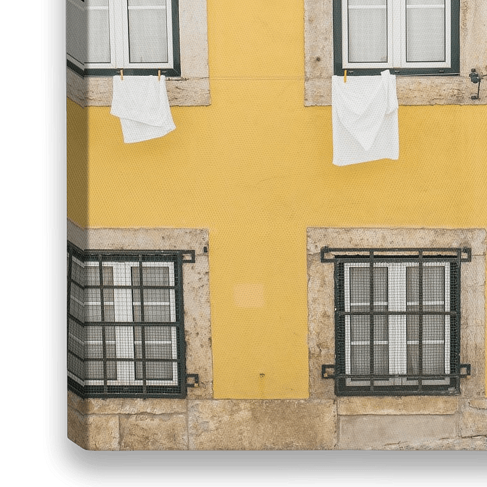 Bestelle das Foto Gelbe Fassade in Lissabon von Patrycja Polechonska als Reproduktion auf Leinwand, Alu-Dibond, als Poster, Fototapete oder Acrylglasbild.