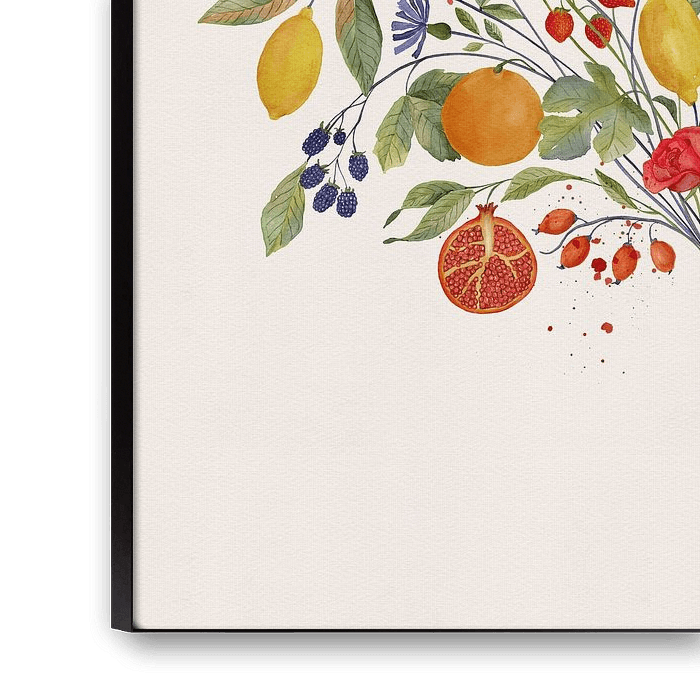 Ein leuchtendes Aquarell eines gelben Teekessels mit einer unerwarteten Wendung: eine Reihe von bunten Früchten, die aus seiner Tülle herausquellen
