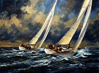 Bestelle diese Malerei Gemälde: Segelbootrennen unter stürmischem Himmel von Jan Keteleer als Reproduktion auf Leinwand, Alu-Dibond, als Poster, Fototapete oder Acrylglasbild.