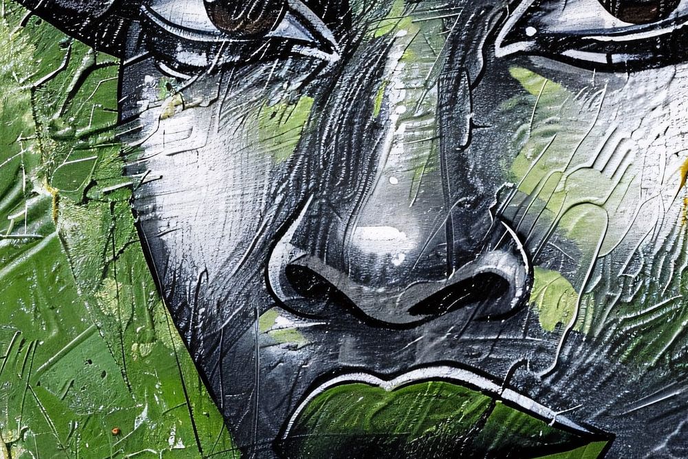 Dieses schöne moderne Gemälde zeigt eine afrikanische Frau in leuchtenden Farben und dynamischen Linien. Die Grüntöne in Kombination mit gelben und weißen Akzenten verleihen dem Porträt ein frisches und energiegeladenes Aussehen. Die Frau trägt auffällige Ohrringe, die der Szene Dimension und Tiefe verleihen. Dieses Kunstwerk ist die perfekte Ergänzung für ein modernes Wohnzimmer oder ein stilvolles Büro, wo es mit Sicherheit die Aufmerksamkeit auf sich zieht und für Gesprächsstoff sorgt. Die einzigartige Kombination aus Street Art und Porträt macht dieses Gemälde zu einer besonderen Bereicherung für jede Kunstsammlung.
