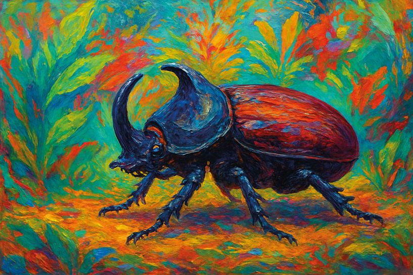 Bestelle diese Malerei Gemälde eines Nashornkäfers. von Galerie Hoppenbrouwers als Kunstdruck auf Leinwand, Alu-Dibond, als Poster, Fototapete oder Acrylglasbild.
