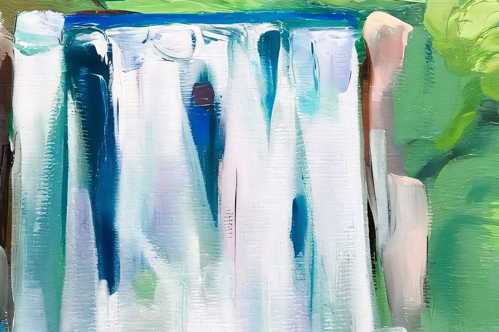 Dieses Gemälde stellt einen ruhigen Wasserfall in einem abstrakten, modernen Stil mit weichen, fließenden Pinselstrichen dar. Die beruhigenden Farben Grün, Blau und Weiß schaffen eine entspannende Atmosphäre, die perfekt in ein modernes Interieur passt. Die Darstellung der Natur mit üppigen Bäumen, die den Wasserfall umgeben, lädt zur Ruhe und zum Nachdenken ein. Dieses Stück ist eine wunderbare Ergänzung für Räume wie das Wohnzimmer oder das Büro, wo es zu einer friedlichen Atmosphäre beiträgt. Der abstrakte Eindruck von Wasser und Grün schafft ein Gleichgewicht zwischen Energie und Ruhe und macht es zu einer vielseitigen dekorativen Wahl.