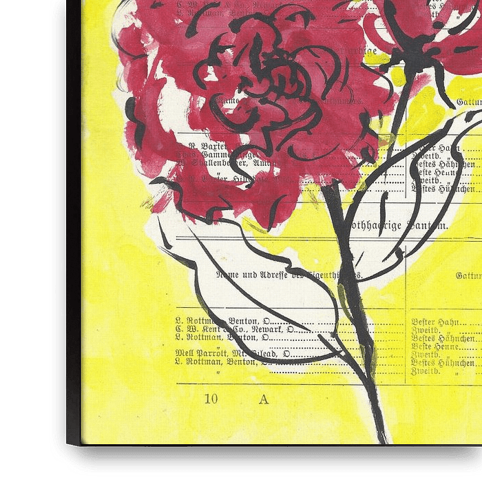 Bestelle dieses Blumen-Wandbild Gemalte Skizze eines Rosenzweigs auf gelbem Hintergrund von Annick als Reproduktion auf Leinwand, Alu-Dibond, als Poster, Fototapete oder Acrylglasbild.