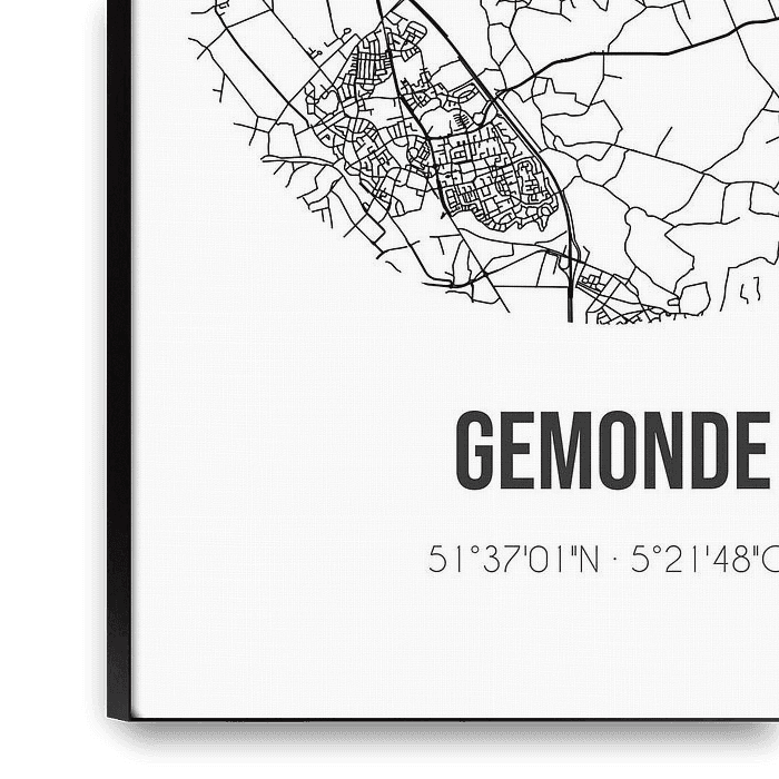 Bestelle dieses abstrakte Wandbild Gemonde (Noord-Brabant) | Karte | Schwarz und Weiß von Ortsdrucke als Reproduktion auf Leinwand, Alu-Dibond, als Poster, Fototapete oder Acrylglasbild.