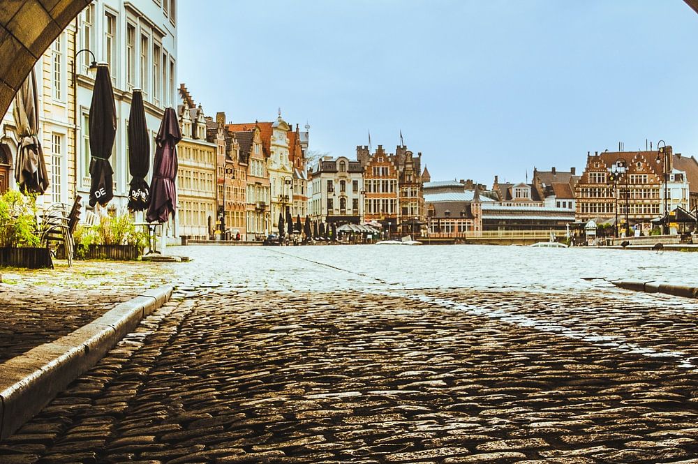 Gent, Blick auf Koornlei von unterhalb der St. Michielsbrug