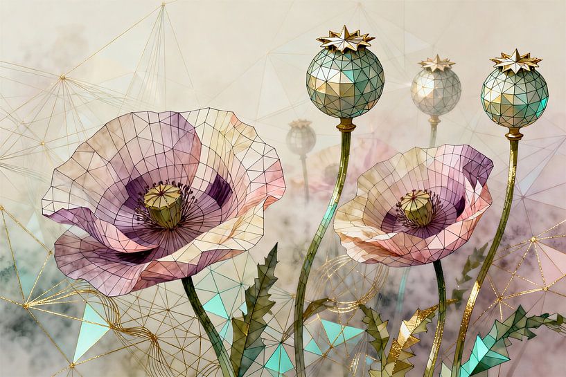 Dieses Werk bewegt sich an der Grenze zwischen Natur und Konstruktion. Blumen, die einst für Zerbrechlichkeit und Vergänglichkeit standen, werden hier als präzise, fast architektonische Formen neu erfunden. Blütenblätter bestehen aus Facetten, Stiele folgen geometrischen Linien und Samenkapseln wirken eher wie Kristalle als wie…