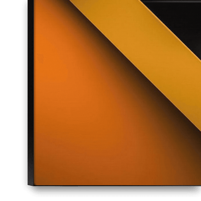 Dieses Bild verkörpert die Verschmelzung von klaren geometrischen Formen und intensiven, lebendigen Farben, die eine beinahe futuristische Ästhetik hervorrufen. Die Linien sind scharf, durchdrungen von symmetrischer Präzision, und die Farbblöcke in Gelb, Orange und Grün schaffen einen faszinierenden Kontrast zu den dunklen Akzenten. Die…