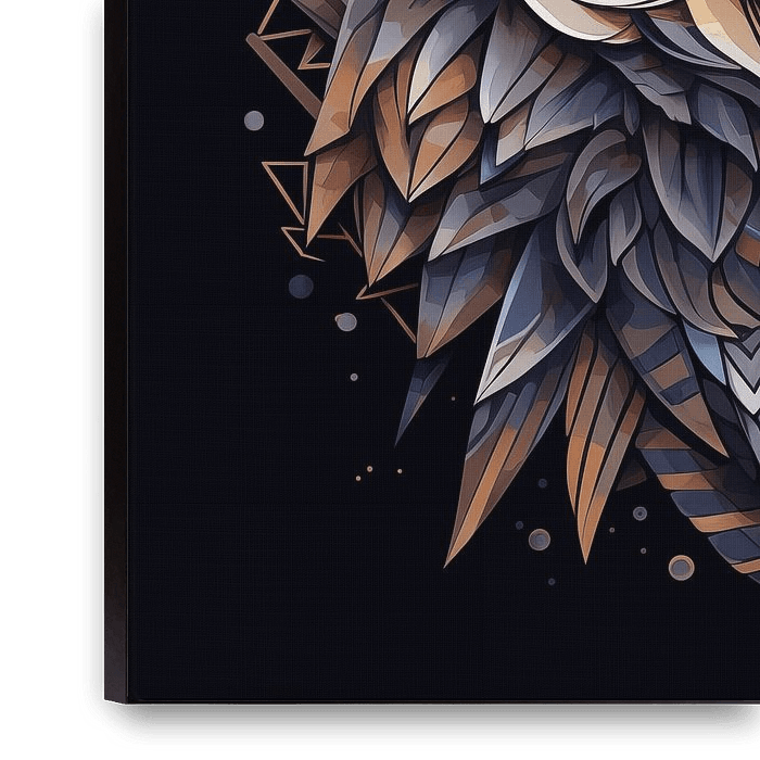 Einzigartiges geometrisches, dunkles Eulengemälde mit originellem Stil. Mit schönen Farbtönen und einem einzigartigen Design ist dies ein stilvoller Fotodruck, der in jedem Raum gut aussieht.