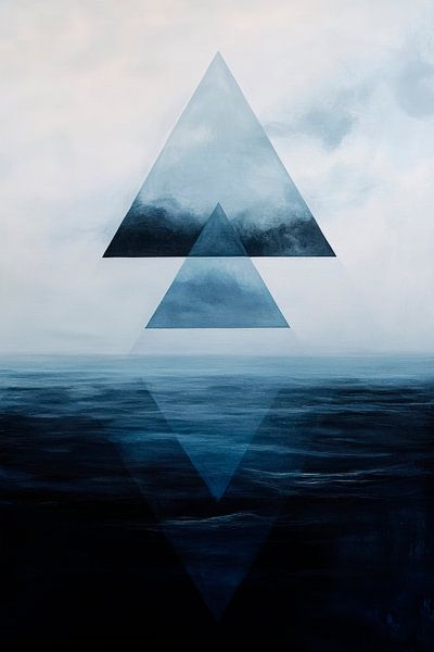 In sanften Blautönen und mysteriösen Dreiecken verschmilzt der Himmel mit dem Wasser zu einem harmonischen Ganzen. Die geometrischen Formen laden zum Träumen ein und fördern die Kreativität. Ideal für ein modernes Büro oder ein inspirierendes Wohnzimmer, wo sie eine ruhige, aber anregende Atmosphäre schaffen können.