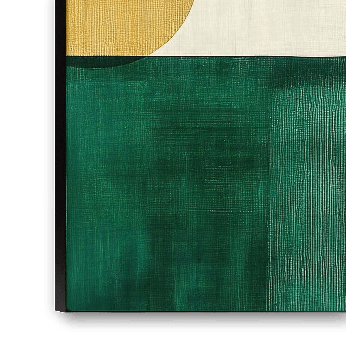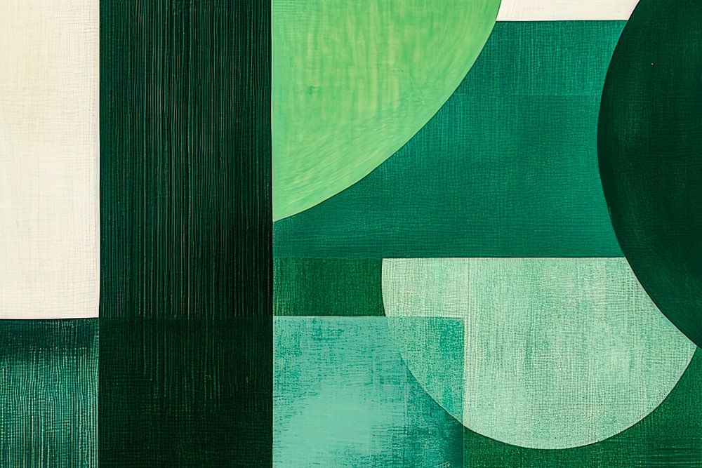 In sanften Grüntönen verschmelzen harmonische Geometrien zu einem spielerischen Tanz der Form und Farbe. Die sanften Kurven und klaren Linien verleihen dem Raum eine beruhigende Eleganz und laden zur Entspannung ein. Ideal für ein Wohnzimmer, wo kreative Gedanken fließen und harmonische Gespräche gedeihen können.