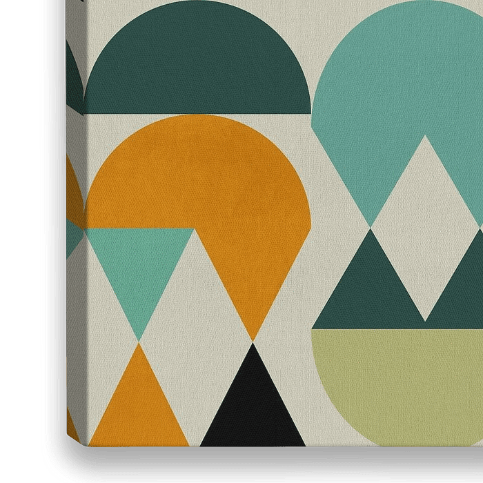 Serie geometrischer Komposition in einer warmen Farbskala von Ocker bis Petrol.