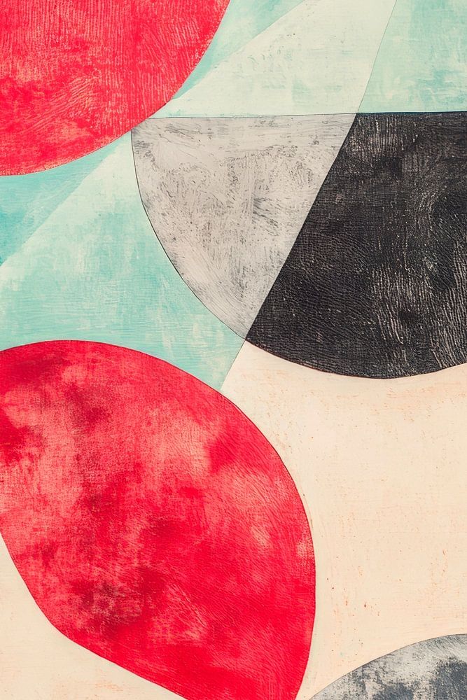 Farbenfrohe Geometrie trifft auf harmonische Balance: Strahlend rote und dynamische schwarze Formen tanzen im Kontrast zu sanften Farbtönen. Diese Kunstwerk zieht die Blicke an und verleiht jedem Raum eine künstlerische Note. Ideal für ein modernes Wohnzimmer, wo es als Blickfang und Inspirationsquelle dient.
