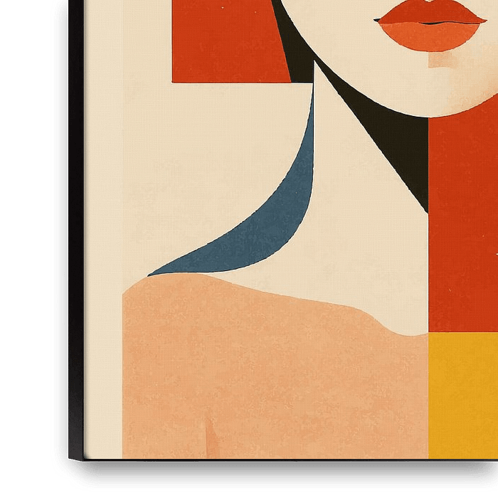 "Geometric Muse" vereint feminine Porträts mit kühnen geometrischen Bauhaus-Formen. Seine Primärfarben und modernen Linien bringen eine dynamische und zugleich elegante Atmosphäre in jeden Innenraum. Bringen Sie mit diesem einzigartigen Stück eine kreative Bauhaus-Energie in Ihr Zuhause.