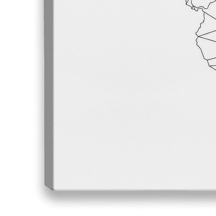 Bestelle dieses abstrakte Wandbild Geometrische Weltkarte | Lineare Zeichnung | Schwarz auf Weiß von WeltkartenShop als Reproduktion auf Leinwand, Alu-Dibond, als Poster, Fototapete oder Acrylglasbild.