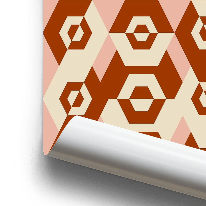 Modernes abstraktes geometrisches Muster mit sechseckigen Formen in einer retro-inspirierten Farbpalette.