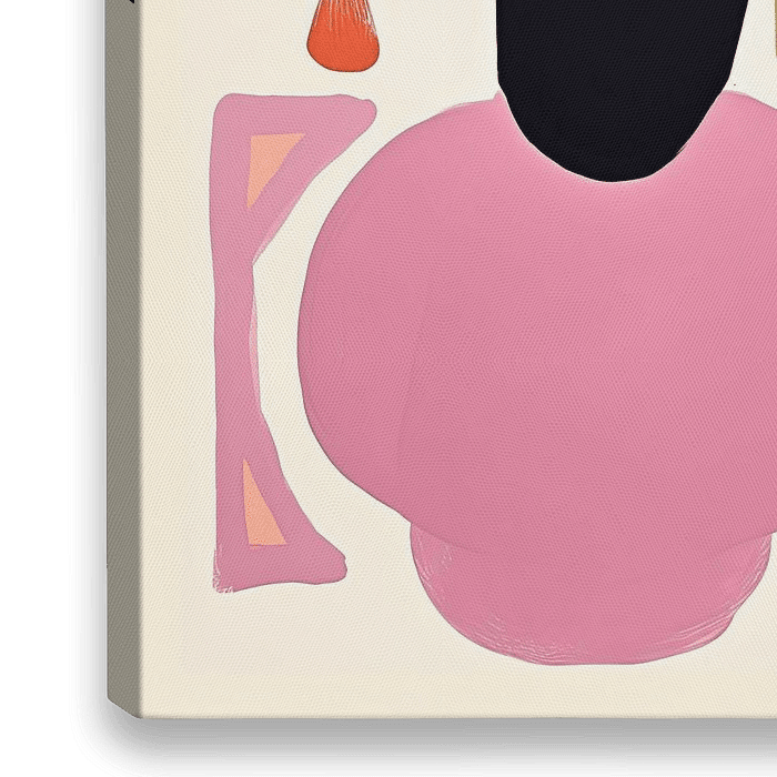 Dieses trendige Kunstwerk ist eine abstrakte Komposition aus verschiedenen geometrischen und organischen Formen, die in einem ausgewogenen und ästhetisch ansprechenden Arrangement vereint sind.