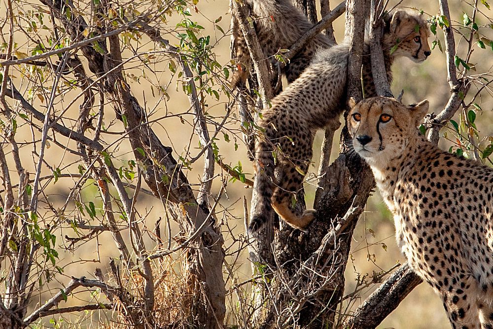 Gepardin m. 3 Jungen