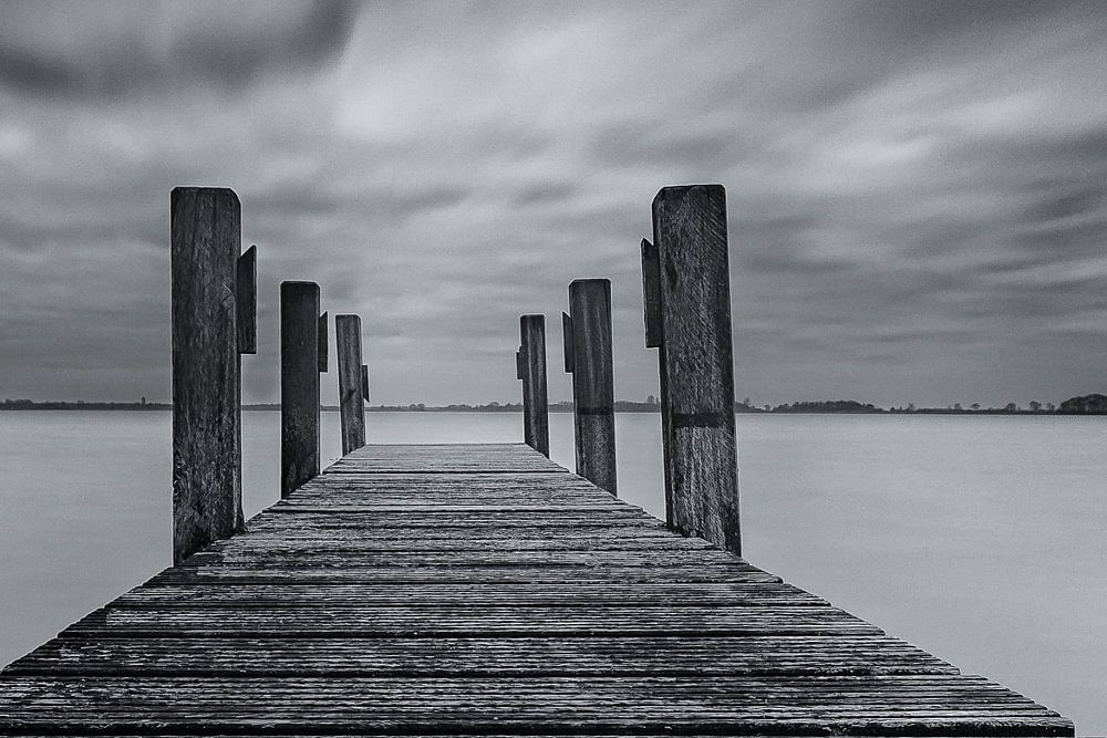 Alte, verwitterte Gerüste in einer Atmosphäre ominöser, dunkler Wolken.