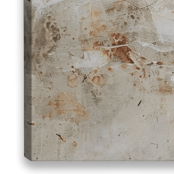 Closed Eyes - Die Leinwand fängt die Essenz eines verträumten Porträts ein, das sorgfältig mit abstrakten Elementen verwoben ist, wobei die neutrale und erdige Farbpalette dem Bild eine ruhige Atmosphäre verleiht. Die Technik zeigt ein spannendes Gleichgewicht zwischen detailliertem Realismus im Gesicht und der Lockerheit der Umgebung,…