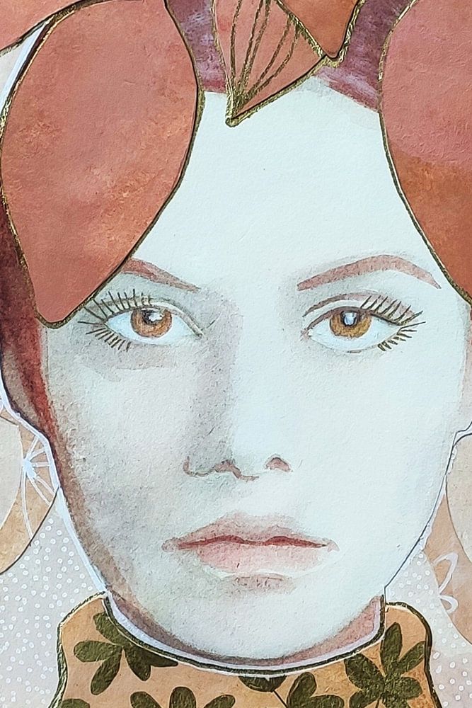 Eine Collage aus handgemalten Elementen in Mixed-Media-Technik.