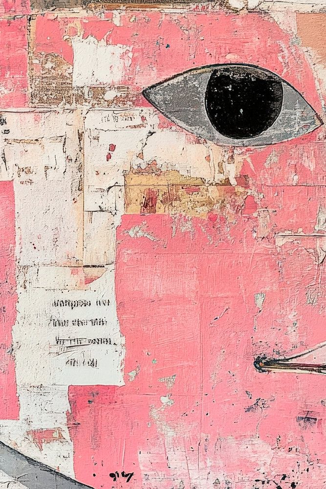In einer harmonischen Fusion aus lebhaftem Pink und strukturierten Collagen offenbart sich ein stilisierter Gesichtsausdruck, der zum Nachdenken anregt. Die eindrucksvollen, großen Augen und die künstlerische Komposition ziehen sofort alle Blicke auf sich. Perfekt geeignet für ein kreatives Wohnzimmer oder ein inspirierendes Atelier, bringt dieses Kunstwerk Farbe und Charakter in jeden Raum.
