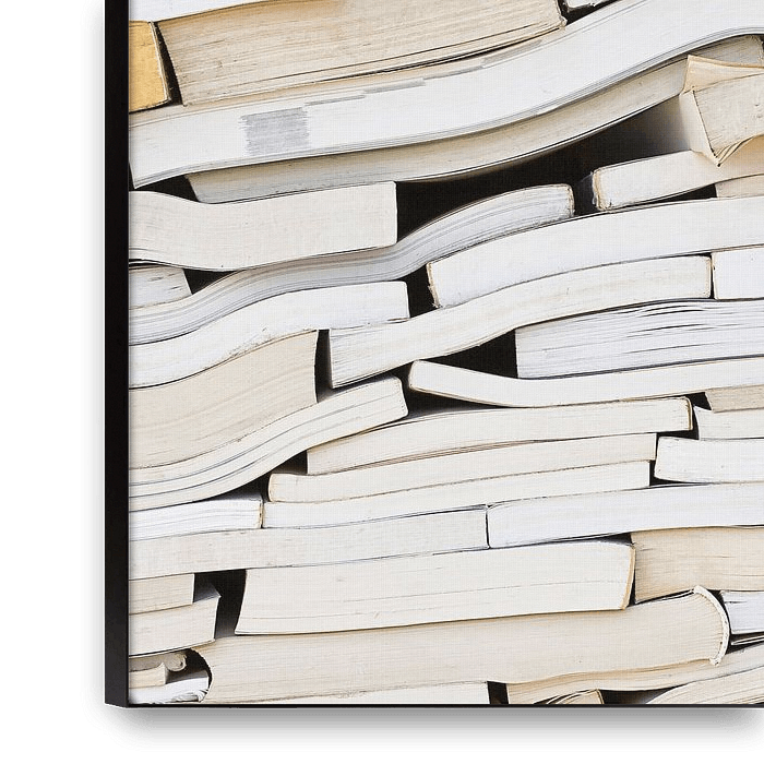 Bestelle dieses abstrakte Wandbild Gestapelte Bücher für das Recycling Verarbeitung warten von Tony Vingerhoets als Reproduktion auf Leinwand, Alu-Dibond, als Poster, Fototapete oder Acrylglasbild.