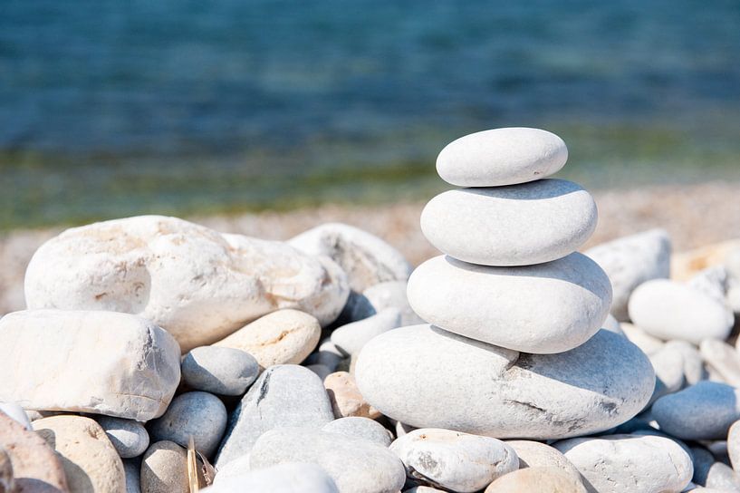 Bestelle das Foto Gestapelte Kieselsteine von Ivonne Wierink als Reproduktion auf Leinwand, Alu-Dibond, als Poster, Fototapete oder Acrylglasbild.