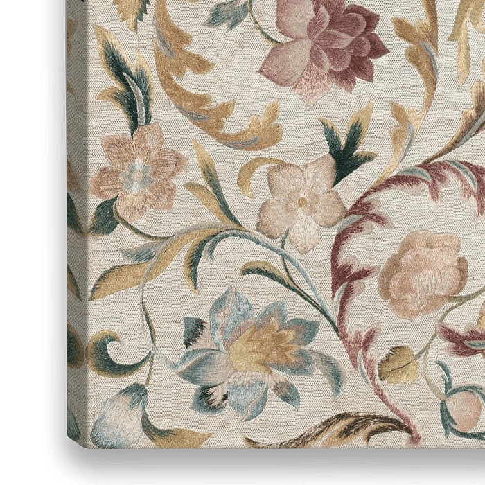 Bestelle Gesticktes Panel mit Blumen, Italien als Reproduktion auf Leinwand, Alu-Dibond, als Poster, Fototapete oder Acrylglasbild.