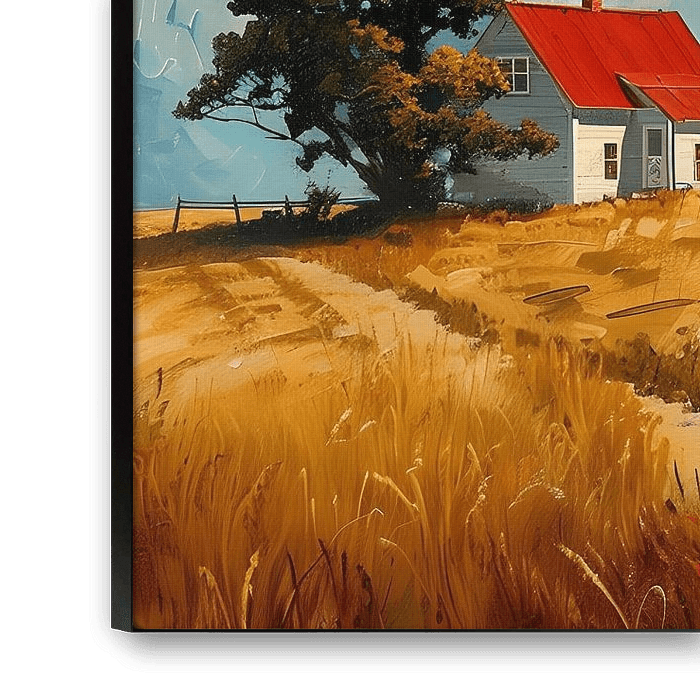 In dem Gemälde eines einsamen Bauernhauses im Getreidefeld im Stil von Edward Hopper wird die Abgeschiedenheit und Stille der ländlichen Landschaft eindrucksvoll dargestellt. Das Bauernhaus steht einsam inmitten eines goldenen Getreidefeldes, umgeben von einer endlosen Weite. Die komplementären Farben des blauen Himmels und des goldgelben Getreides schaffen eine ruhige und friedliche Atmosphäre. Die präzise Darstellung von Details wie dem Getreide und den Schatten wirkt realistisch und gleichzeitig leicht surreal. Durch die Reduktion auf das Wesentliche und die Fokussierung auf Licht und Schatten gelingt es dem Gemälde, eine tiefe emotionale Wirkung zu erzeugen und den Betrachter in die Einsamkeit und Schönheit der ländlichen Landschaft einzutauchen.